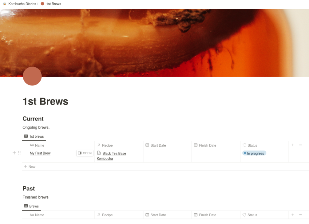 This Kombucha Diaries Notion template has helped keeping the kombucha brewing in organized state in our household, and I would love to share it with you. If you feel it is useful, please consider paying what you think it's worth to you.
